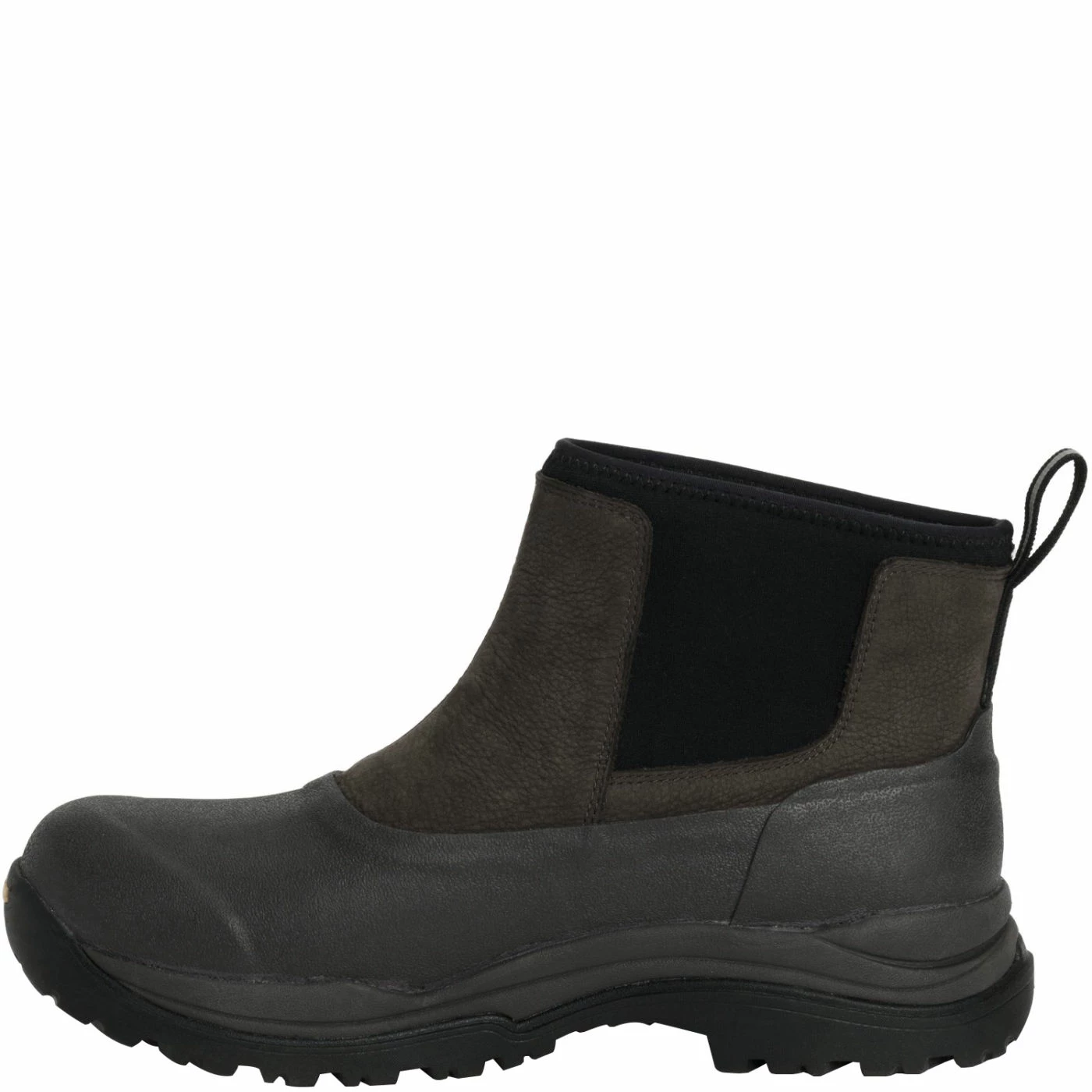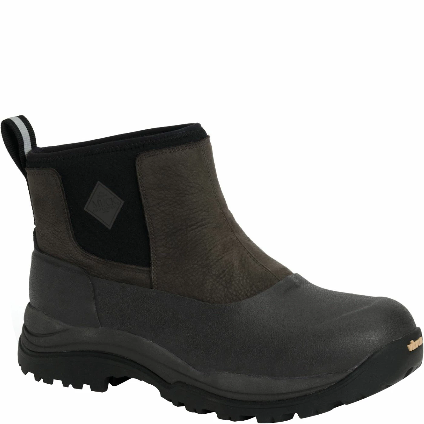 Sporting a tailored fit and stylish look, these Muck Arctic Outpost Series Mid-Height: Pull on Leather & Rubber Men’s Winter Boots are ideal for almost any cold weather activity. The rich full-grain leather upper combines with 4 mm Flex-Foam neoprene for 100% waterproof protection. The flexible neoprene in these men’s winter boots also conforms to the unique shape of your feet for longwearing comfort. The pull on style allows for comfor and long-lasting durability. A soft fleece lining enhances comfort and keeps feet warm in cold winter weather. For added safety, these waterproof winter boots feature multi-directional lugs on the outsole for improved traction on icy and uneven surfaces..